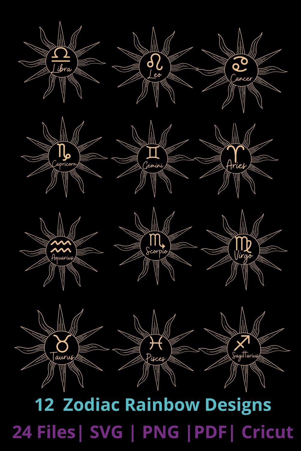 12 Celestial Sun, Gold Zodiac Signs SVG, Zodiac SVG Bundle, Horoscope svg png, Cricut File, Silhouette, T-Shirt Design, Digital Download